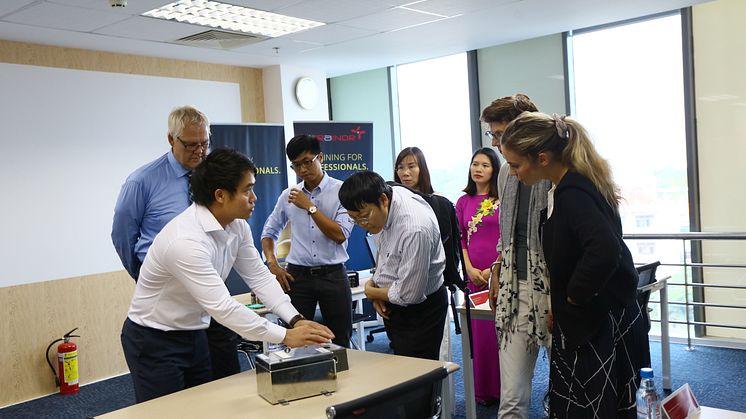 Welcoming the Ambassador and the officials, Mr. Terje Gravdal, CEO of the Trainor Group, briefly introduced the history, the operation and the development of Trainor in Norway, China, Korea and Vietnam. Mr Thaison Vu, Director of Trainor Vietnam, shared with the visitors the purpose of providing Ex training and certifying personnel qualified to work with explosion-protected equipment with IECExCoPC (Ex001, 003, 004, 006, 007, 008 & 009) in Vietnam, raising awarness of safety and competence for Vietnamese engineers who work in explosive atmospheres. In this regard, it is obvious that the certification scheme will provide both the personnel and the country with competitive advantages in the global market.
